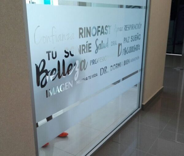 Vinil esmerilado con corte e instalación en oficinas y casas.